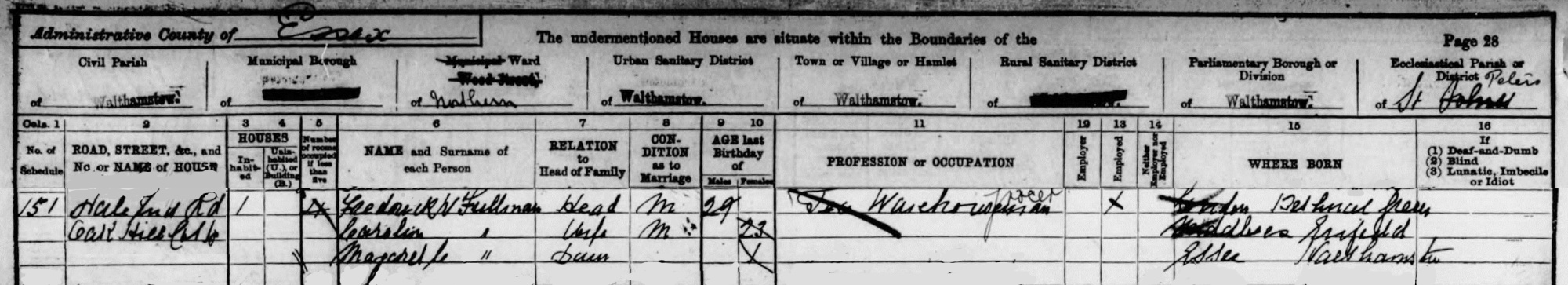 census Oak Cottages, Oak Hill, Walthamstow, Essex