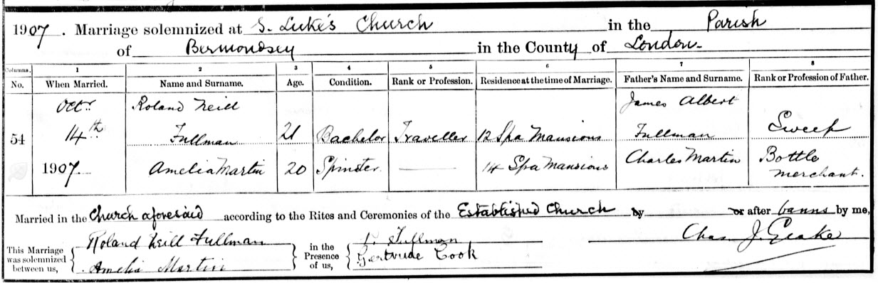 14 Oct 1907 St Lukes, Bermondsey, Surrey (cert)