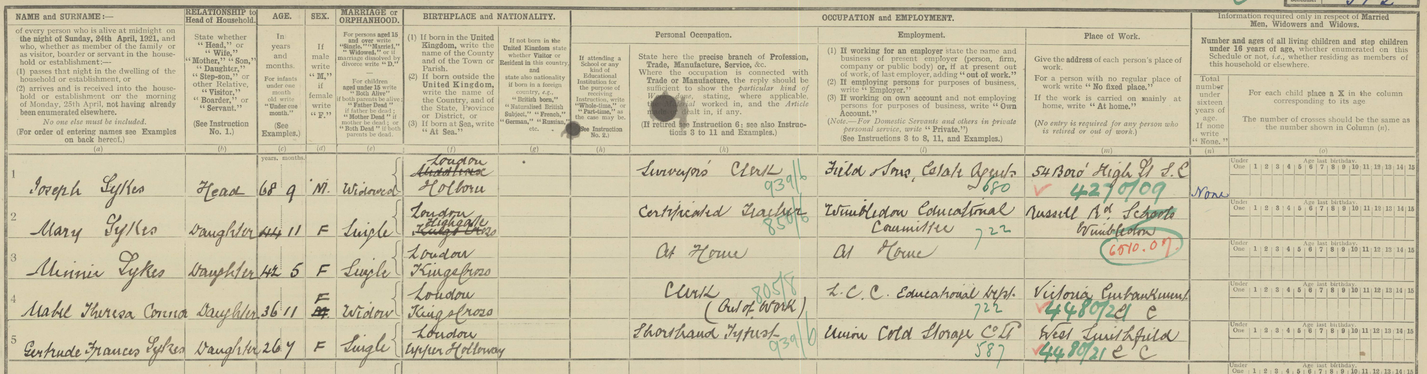 Occupations 1871 census Clerk 1 Apr 1872 Clerk (cert) 1881 census Clerk To Surveyor & Estate Agent 1901