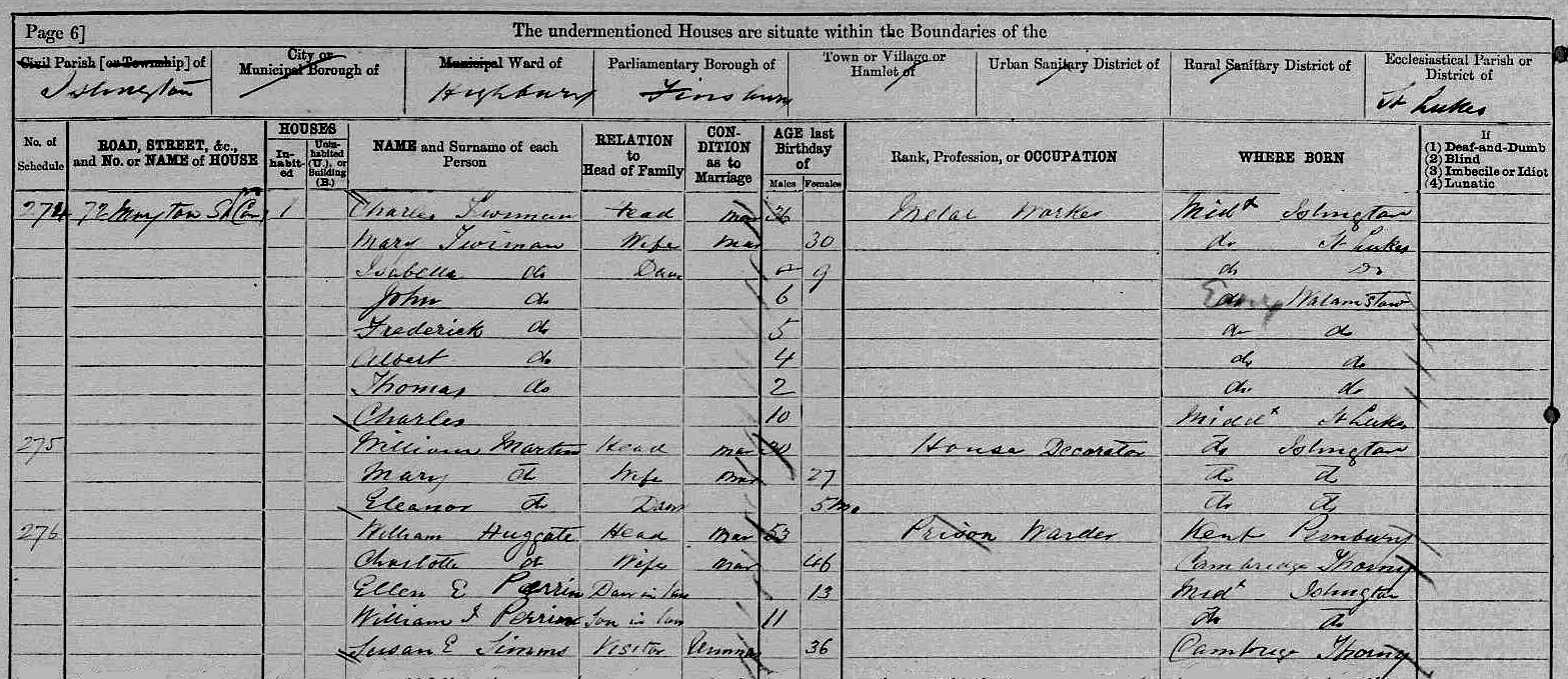 census 17 Riversdale Road Highbury North, Islington, London