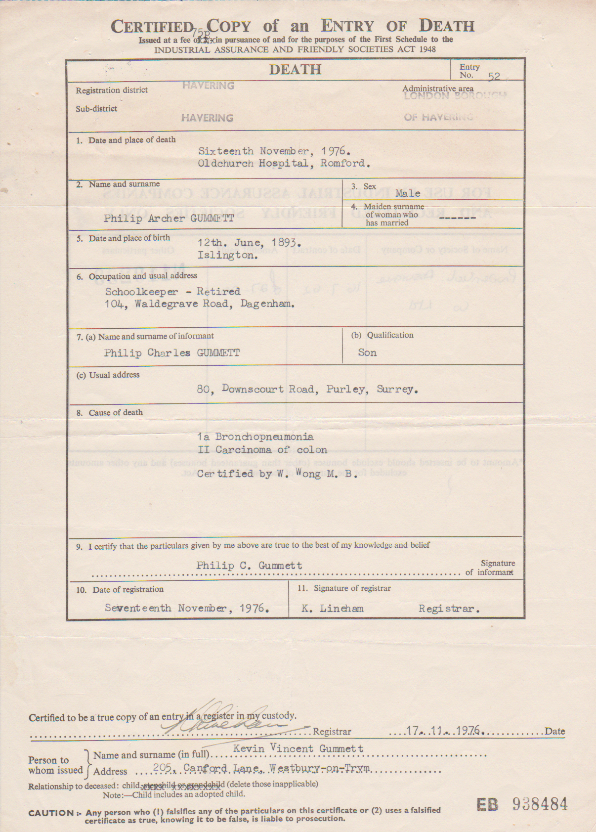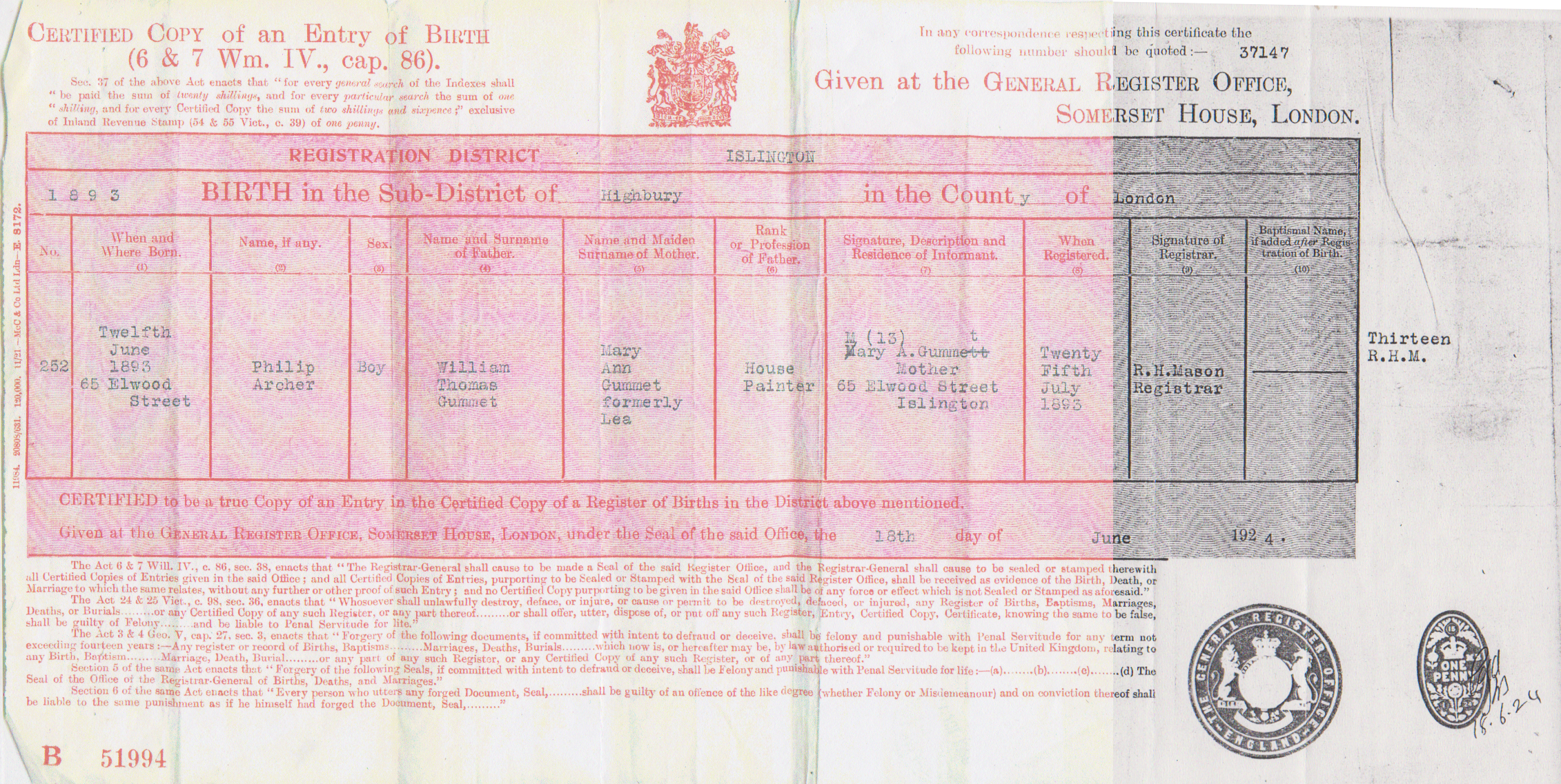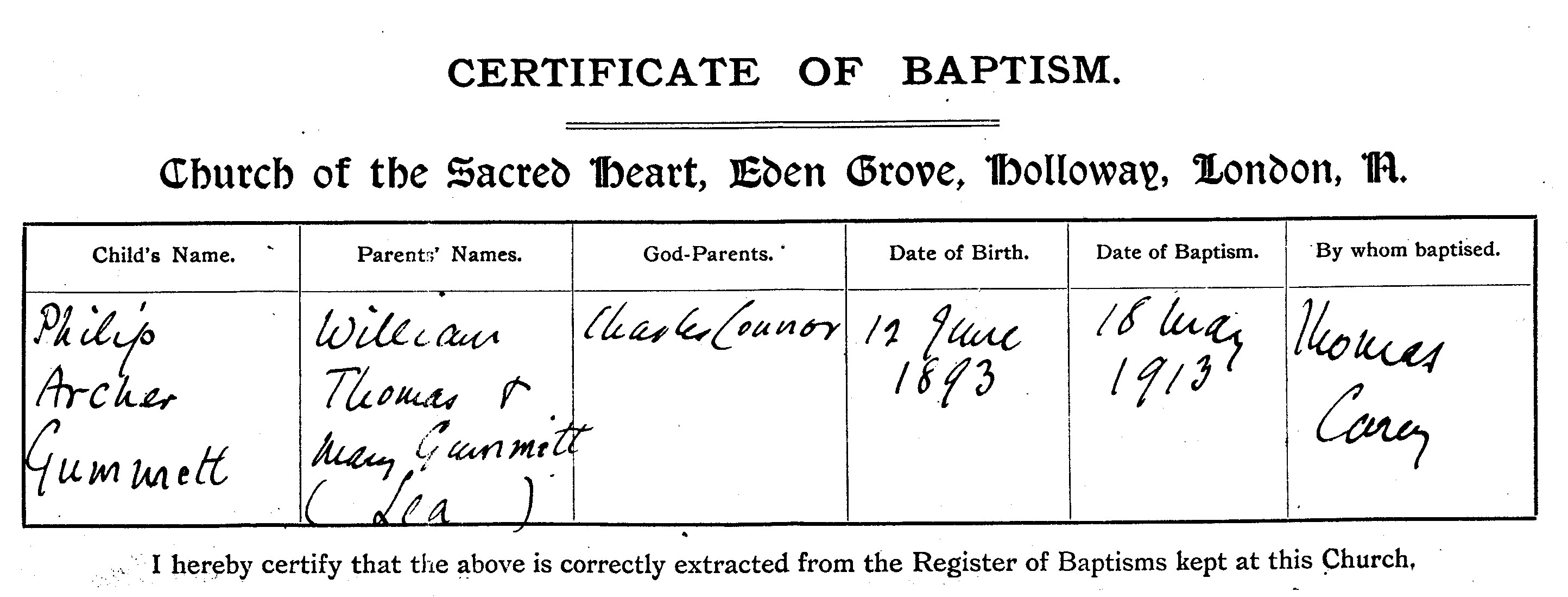 12 Jun 1893 65, Elwood Street, Islington London (PCG) bapt 18 May 1913 Church of the Sacred Heart, Eden Grove, Holloway, London (cert) |