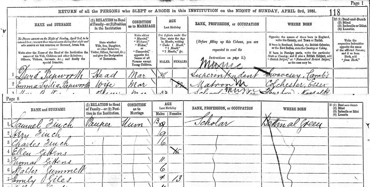 1881 census Bethnal Green Workhouse Schools, Leytonstone