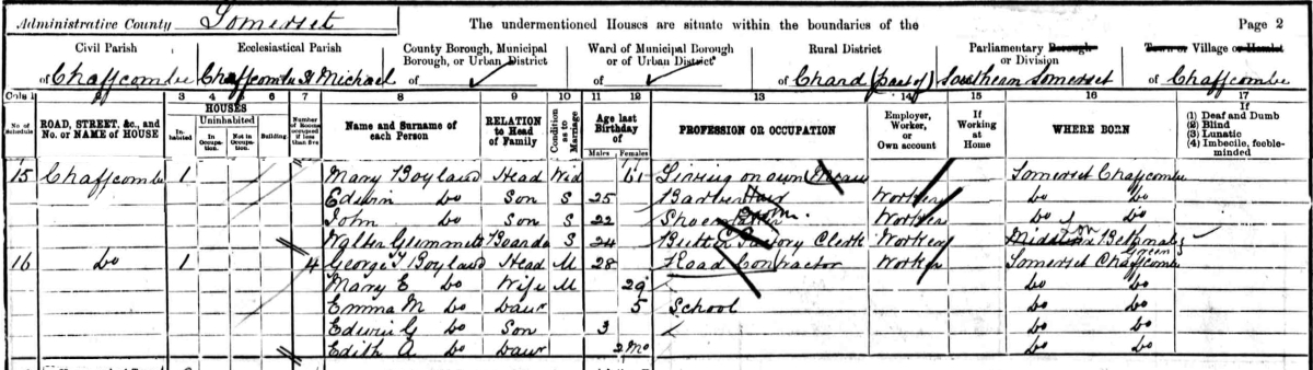 1901 census Chaffcombe St Michael, Chaffcombe, Somerset (boarder)