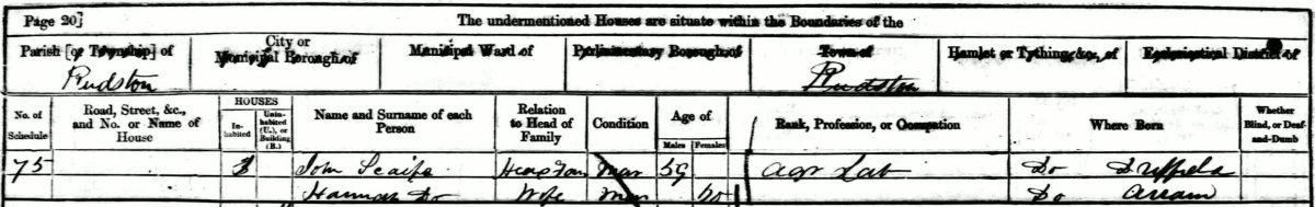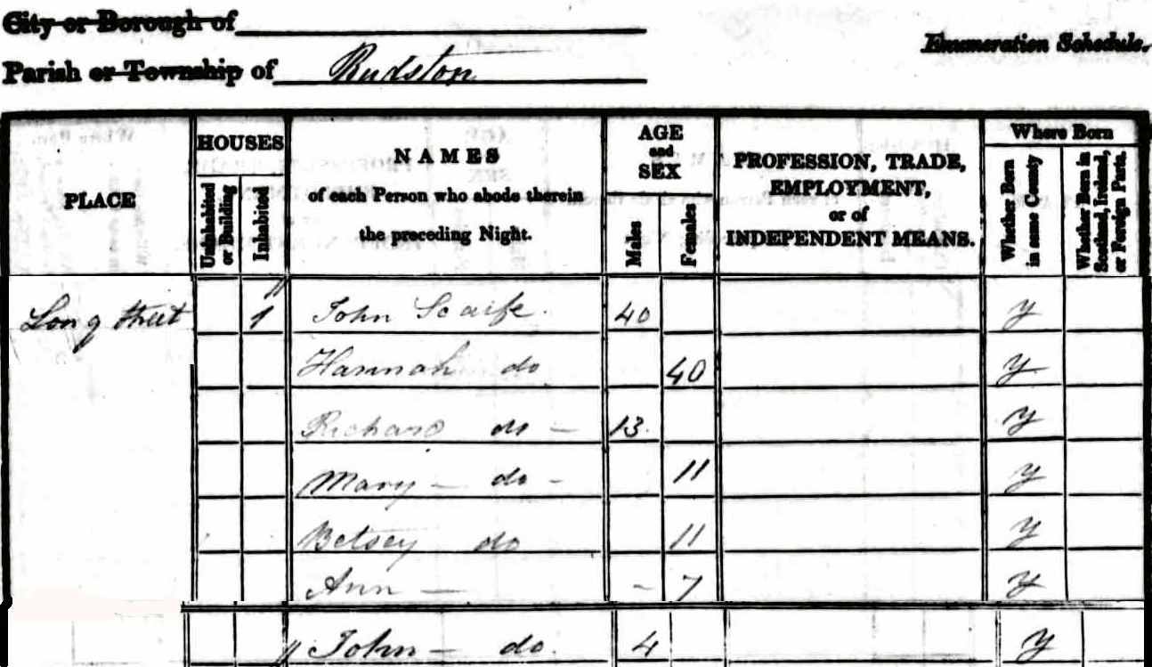 census Rudston, Yorkshire - next door to son Richard
