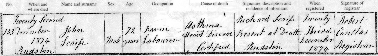 Scaife / who died December 22nd 1874 / aged 72 years /