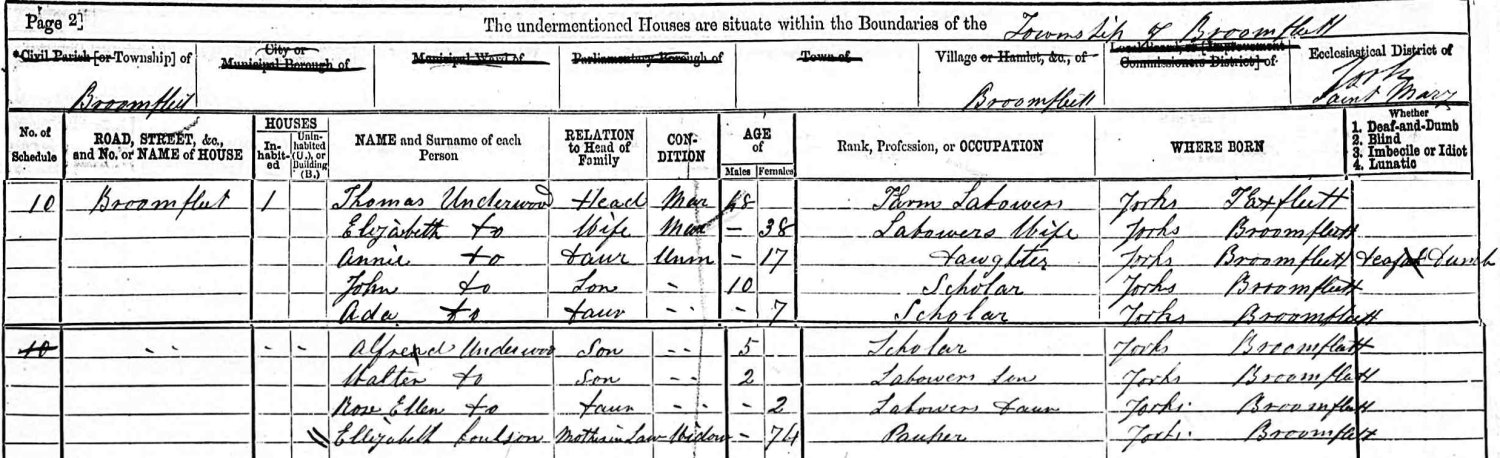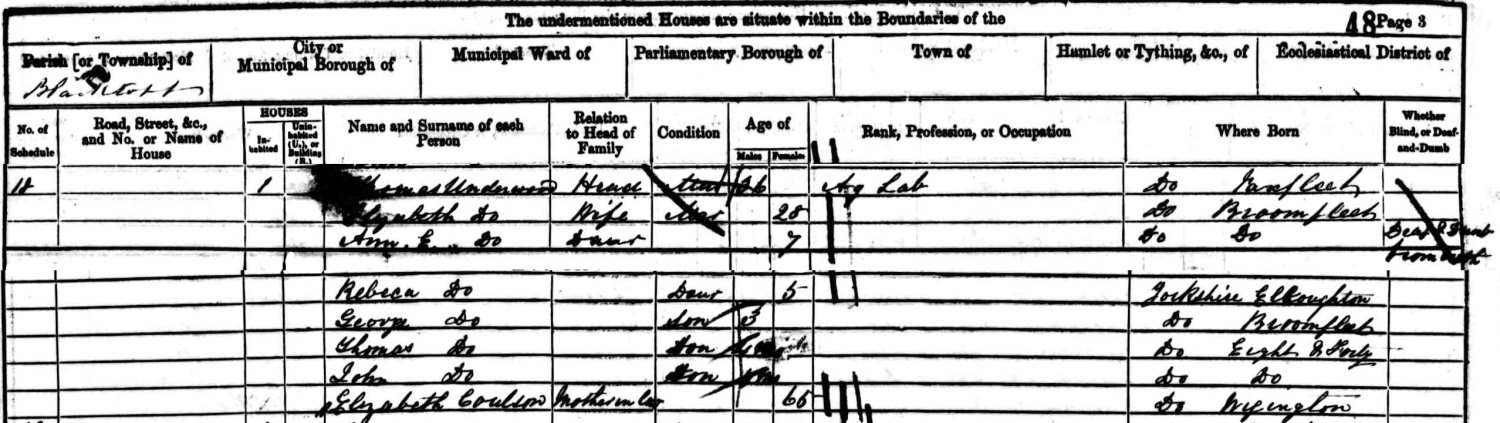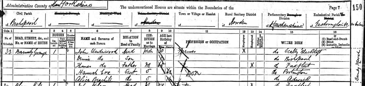 census Barmby Grange , Bishopsoil, Howden, Yorks (with son John UNDERWOOD)