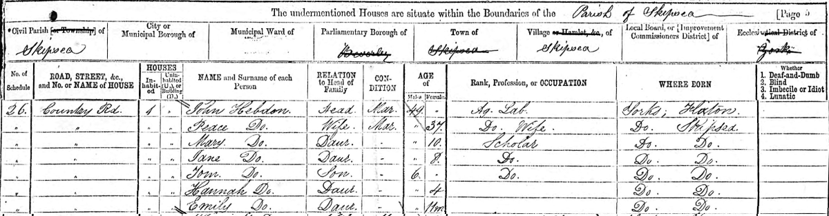another girl - Jane STEVENSON, bapt 10 Apr 1842 Skipsea, Yorkshire -