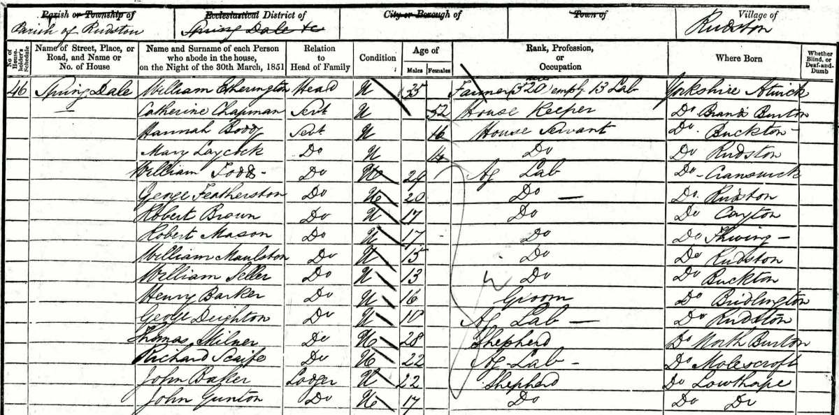 8 Jun 1880, Rudston, E Yorks aged 51 (MI)