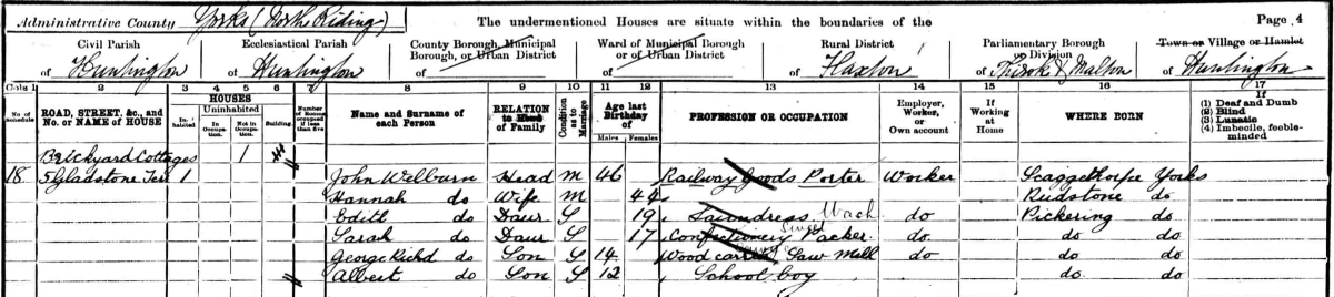 WELBURN, b c1882, PICKERING North Yorkshire