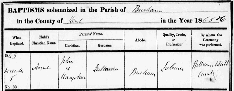 bapt 03 Dec 1865 Burham, Kent (PR) (IGI)