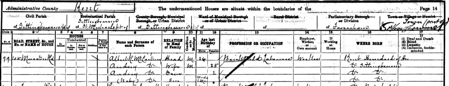 census 105 Mountain(?) Rd, Sittingbourne, Kent