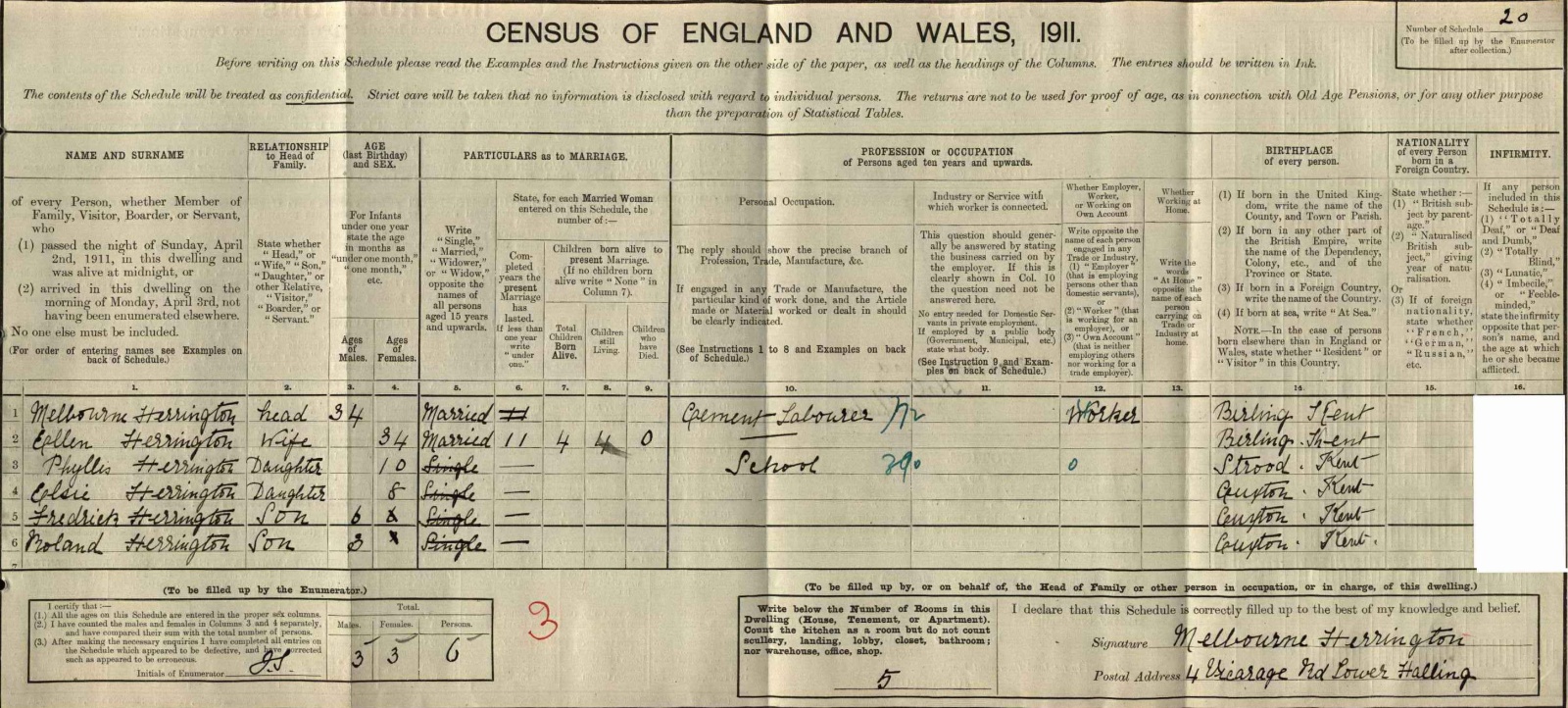 4 Oct 1917 17, Birling Rd., Snodland, Kent. |