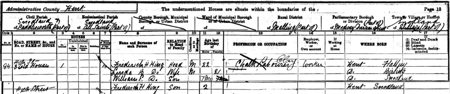 Issue from this marriage: (VF) Frederick H KING b c1899, Snodland, Kent William E KING b c1900, Snodland, Kent |