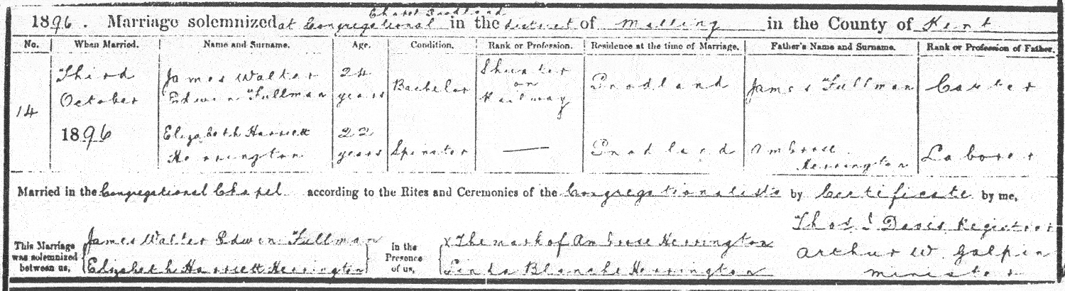 | Witnessed her sister Elizabeth's marriage in 1896 (cert) | ||