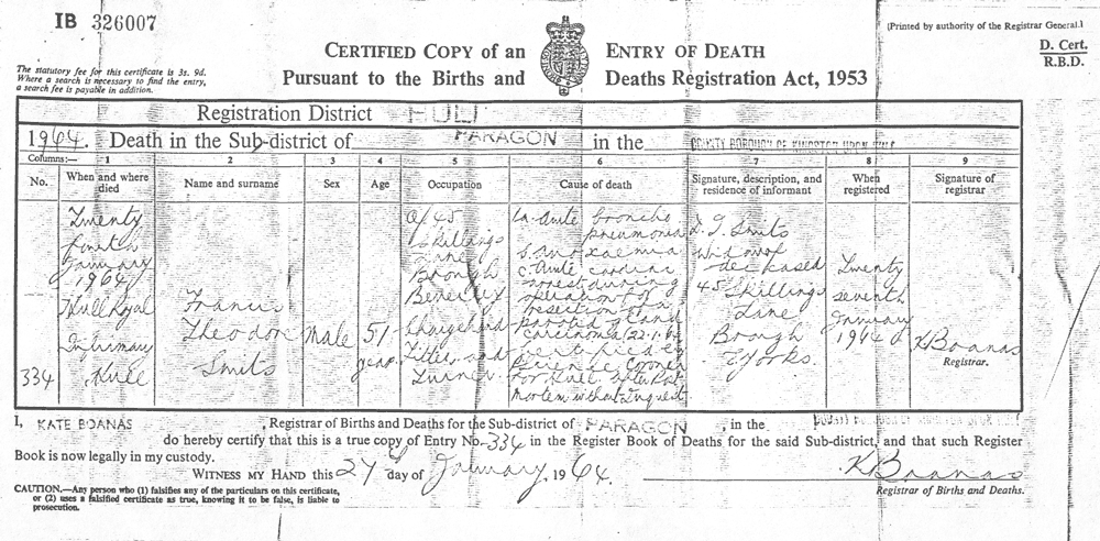 24 Jan 1964 Hull Royal Infirmary (cert) buried Elloughton Churchyard (EAS) |