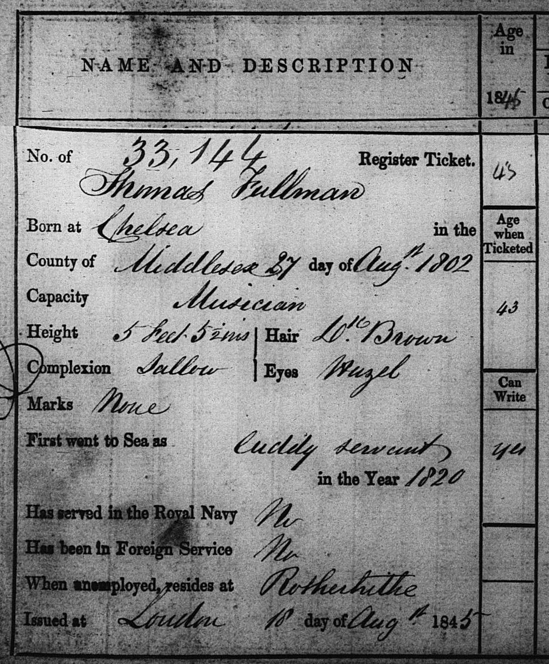 b 27 Aug 1802, Chelsea (PRO) Fullman Index bapt 10 Oct 1802, St Luke, Chelsea, London (IGI) |