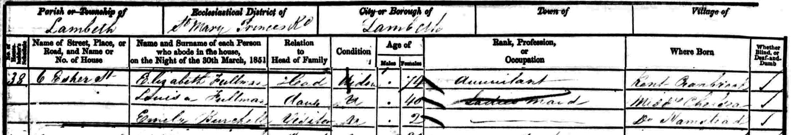 Louisa FULLMAN Ladies Maid (1851 census) |